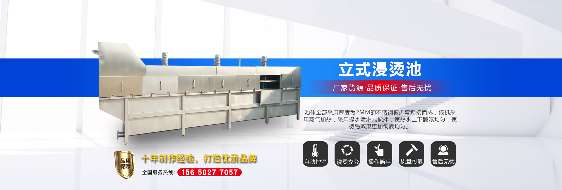 公司長期與國內(nèi)外屠宰加工企業(yè)合作,走引進——消化——創(chuàng)新和自主研發(fā)相結合的道路,在國內(nèi)外同類產(chǎn)品的基礎上,不斷更新和改造。公司主要設備有:A字型立式脫毛機、臥式脫毛機、強力噴淋機、松毛機、浸燙池、螺旋預冷機、禽籠清洗機、電暈機、兔扯皮機、兔割前爪/后爪機、剝胗機、自動洗鉤機、螺旋燙爪機、雞爪脫皮機、分割輸送帶等屠宰用設備。其中,公司獨力發(fā)明生產(chǎn)設計的“電動調(diào)節(jié)脫毛機”及“自動控水控溫浸燙池”順利通過知識產(chǎn)權局的實質(zhì)性審查。公司所生產(chǎn)的設備 可與國外同類產(chǎn)品配套使用,設備遠銷阿爾及利亞、澳大利亞等中東、非州等并建立了長期穩(wěn)定的合作關系。